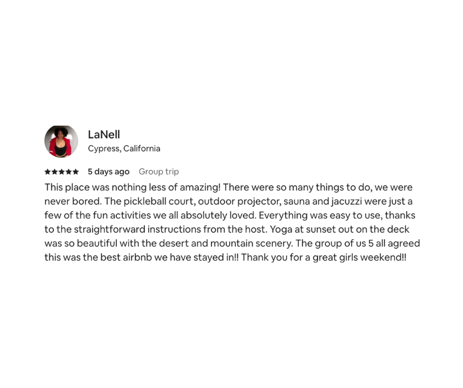 We’re incredibly grateful for the kind words our guests leave behind. Here’s what they’ve shared about their time in the desert.